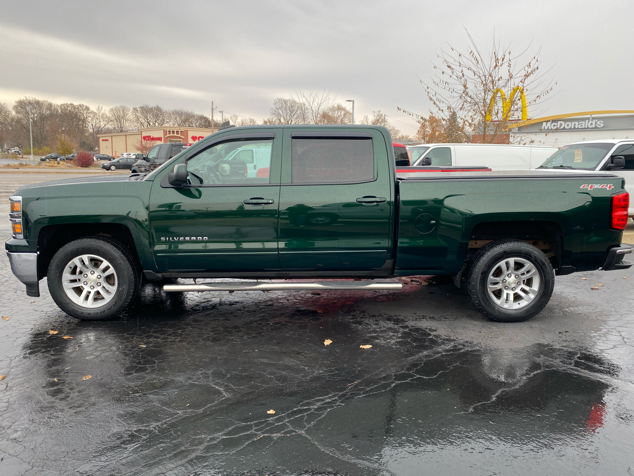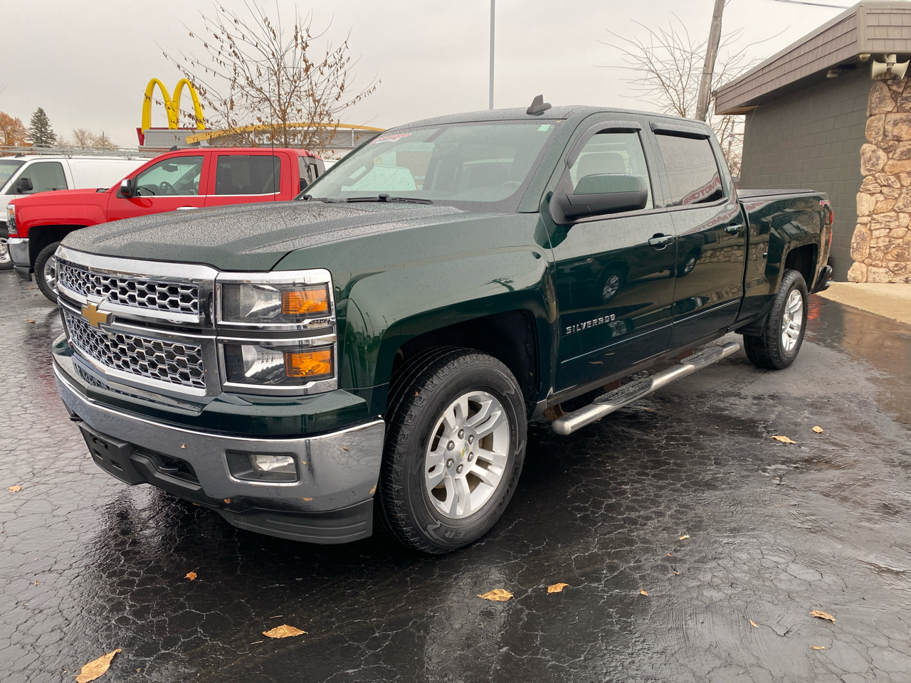 Climb into this vibrant green 2015 Chevrolet Silverado 1500 and get ready to conquer the roads with its four-wheel drive capability. Tackling tough terrain is a breeze with the rear axle ratio and handling/trailering suspension package. The powerful 4.3L EcoTec3 V6 engine ensures you have the strength needed to haul up to 7,100 lbs with ease. The exterior is accented with chrome bumpers, deep-tinted glass, and sleek body-color mirror caps. The interior features a 6-gauge cluster for easy monitoring of vehicle stats, while the 6-speaker audio system provides entertainment on the go. Safety is a top priority in this truck, with dual-stage frontal airbags, side-impact airbags, and stability control. Whether you're hitting the trails or cruising through the city, the 2015 Chevrolet Silverado 1500 is the perfect blend of power, style, and functionality. So hop in, buckle up, and get ready for an unforgettable ride!